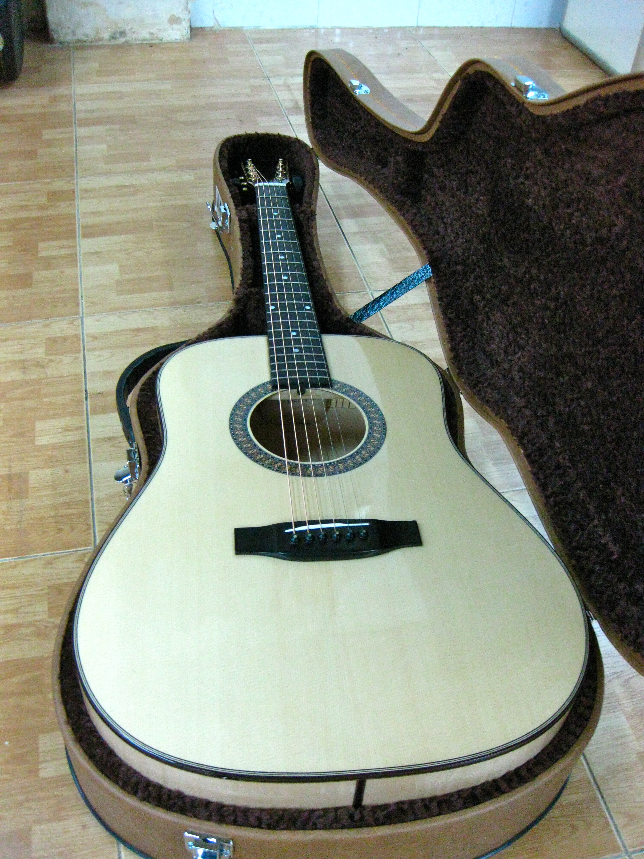 Just bought a dreadnought in maple with sitka spruce top from Mr. Binh today. Ordered it yesterday, picked up today. Could have walked out with it yesterday, but I wanted the optional Fishman Blender pickup/preamp and a strap clip installed. US$440 out the door, with hardshell case. Now I own two Taylors, one very rare 30th Anniversary Edition 514-CE-L30 (retail US$3450), and one 414-CE (retail US$1850), both 2004 models. And I love my Taylors. But I’m playing Binh’s guitar right now, and I gotta tell ya, this thing is more responsive, has a better feel, lighter action, louder sound than the Taylors. I’m very pleased with it. Was thinking about leaving it here for my brother-in-law, but now I’m seriously considering taking it home with me when I go back to the states in 3 months. Check out his inventory and prices: http://www.binhguitar.com