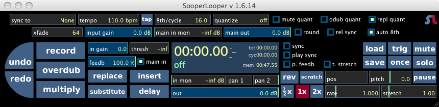 You can set SooperLooper up for midi controls but the key binding options will help you navigate the window pretty easily as well. They’re found under SooperLooper Preferences.