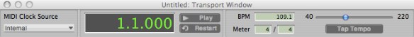 Here’s something pretty cool – the Window tab in AU Lab – select Show Transport