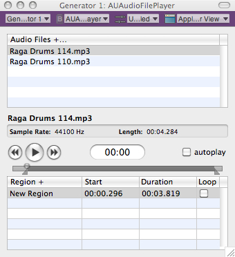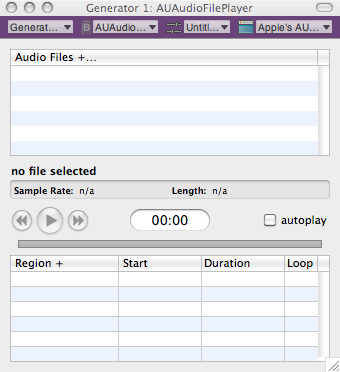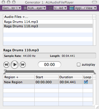 Here’s something pretty cool the Window tab in AU Lab – select Show Transport