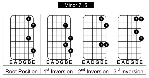 - minor 7 b5 (B min7b5 in the key of C)