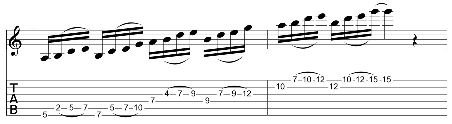 - The patterns only accents the first note. (Special playing tip – if you play this as sextuplets, it gives the lick an even more legato feel!)