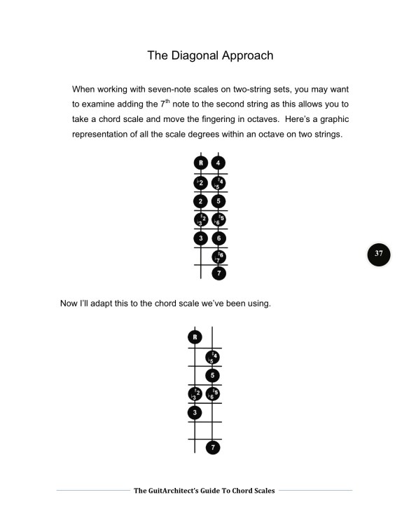 The lulu.com page includes a preview option for the first 12 pages of the book, but I’ve included some additional jpegs of some of the Chord Scales book pages below. Since the jpegs were converted from the pdf of the book, there’s some pixelation in the jpegs that’s not present in the pdf, but these will still give you an idea of what’s in the book.