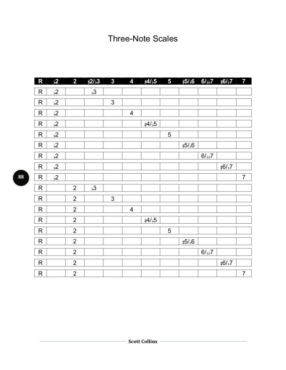 Chord Scales is 190 pages of instruction and reference. It’s the shortest book I’ve written, but it’s just as deep as any of the other books. The big difference between this book and the other books, is that this book starts by taking one chord scale and really putting it through the ringer and demonstrating how to use it in ways that are intuitive and musical. Once the process for what to do with a chord scale is demonstrated, the book then goes on to outline all the unique chord scales from 3-12 notes!!!