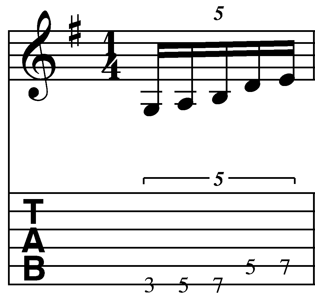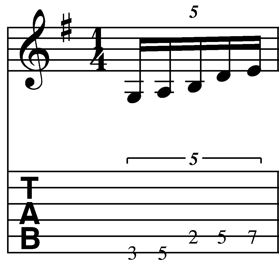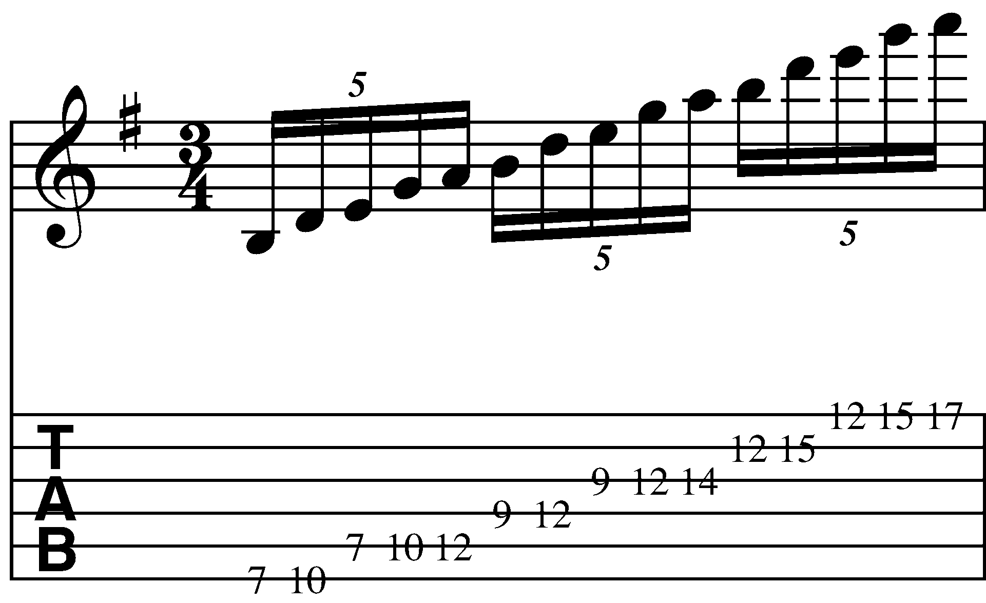 - Starting on the Bb on the G string, I’ve rhythmically copied the same phrase as on the A and G strings. By playing it as a pattern, it creates some consistency in the phrase. While the rhythm is sextuplets – the phrasing is alternating groups of 4 and 6.