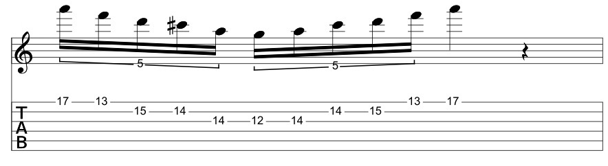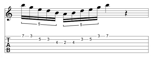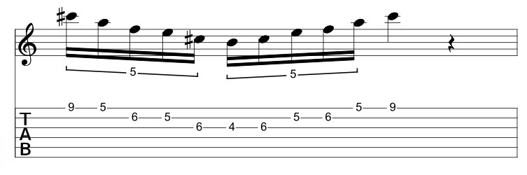In all the audio examples, I’ve played the example first as sextuplets – then at a slower tempo (i.e. 16ths) – then as sextuplets again.