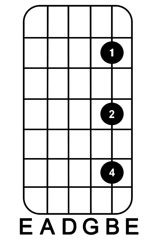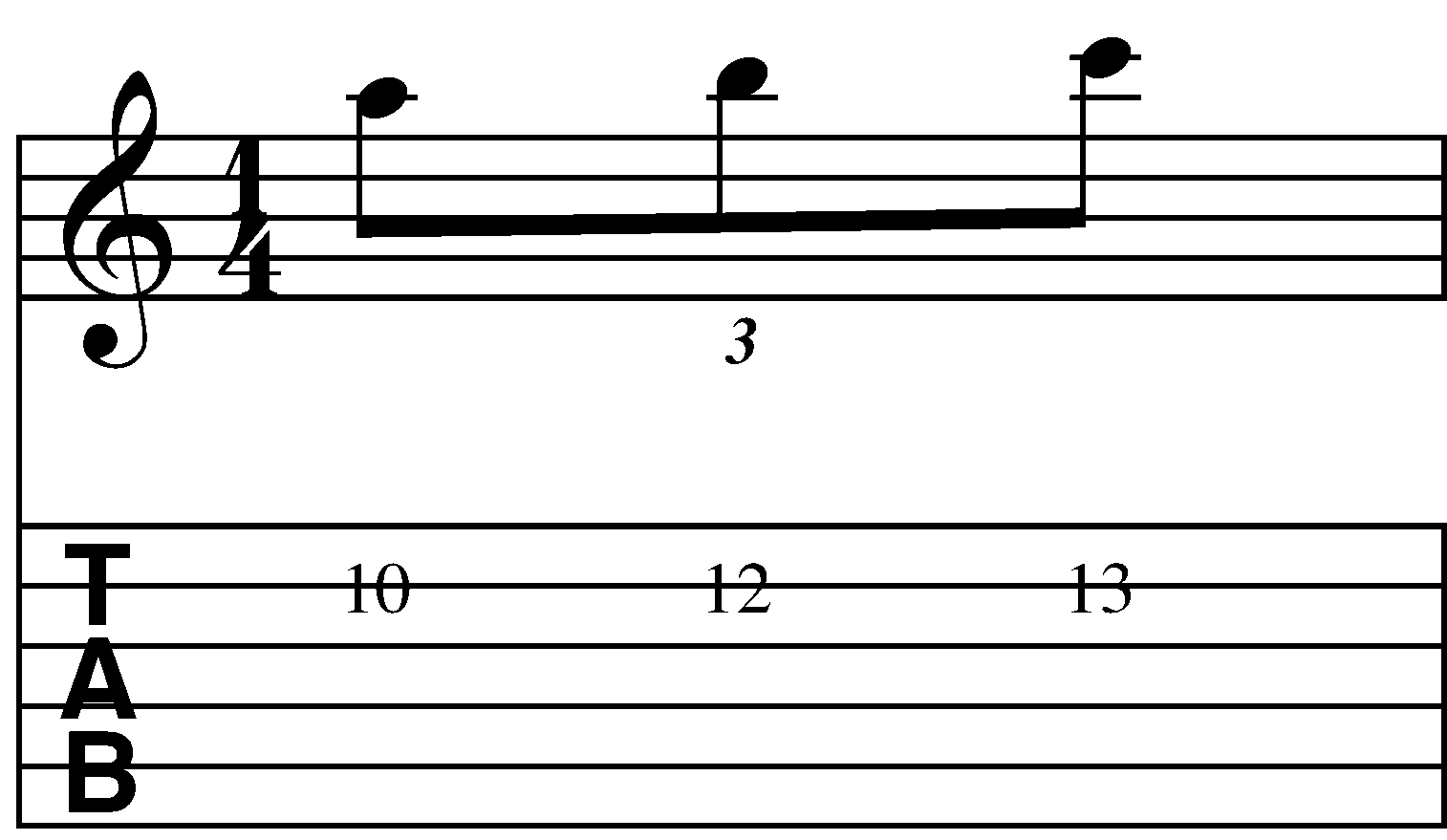 And a generic 3 note shape.  The numbers indicate recommended fret hand fingers to use.