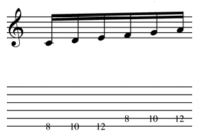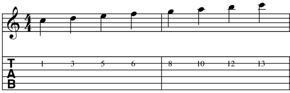 Let’s take a look at the initial two-string C Major pattern that we used in the previous lesson.