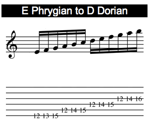 • For those of you looking to skip ahead, try playing the root of each 6 note pattern as a bass note and then playing the pattern over it. (i.e. D Dorian over D, E Phrygian over E etc.) one you get the initial patterns in your ears as C Major.