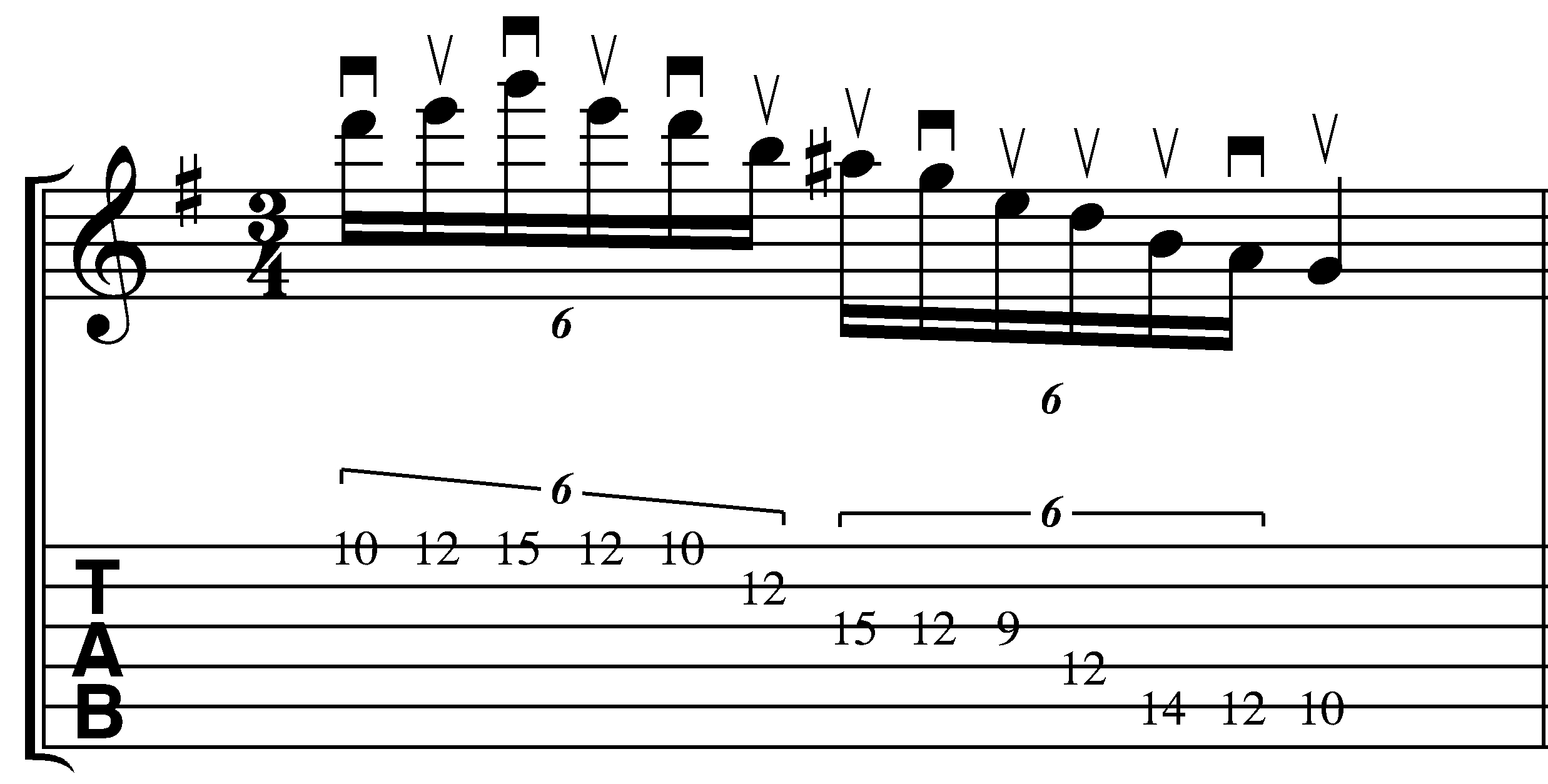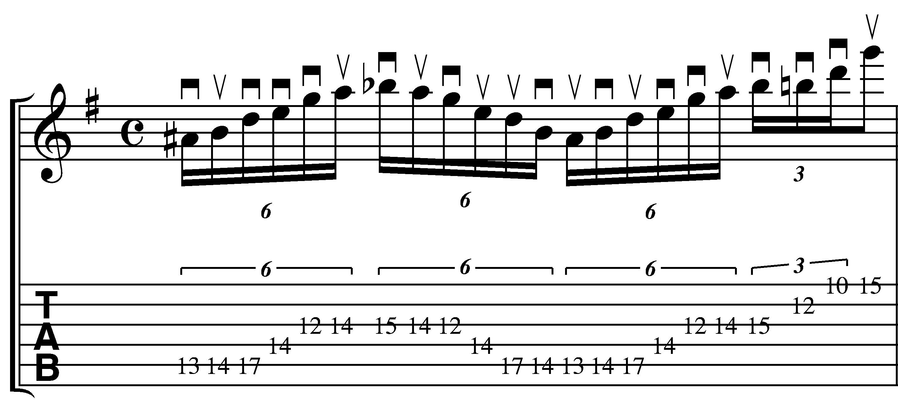 There’s a slight 2 string variation on the A string that’s hammered instead of picked, but otherwise the picking pattern discussed on the swept pentatonic lesson is the same approach that’s used here.