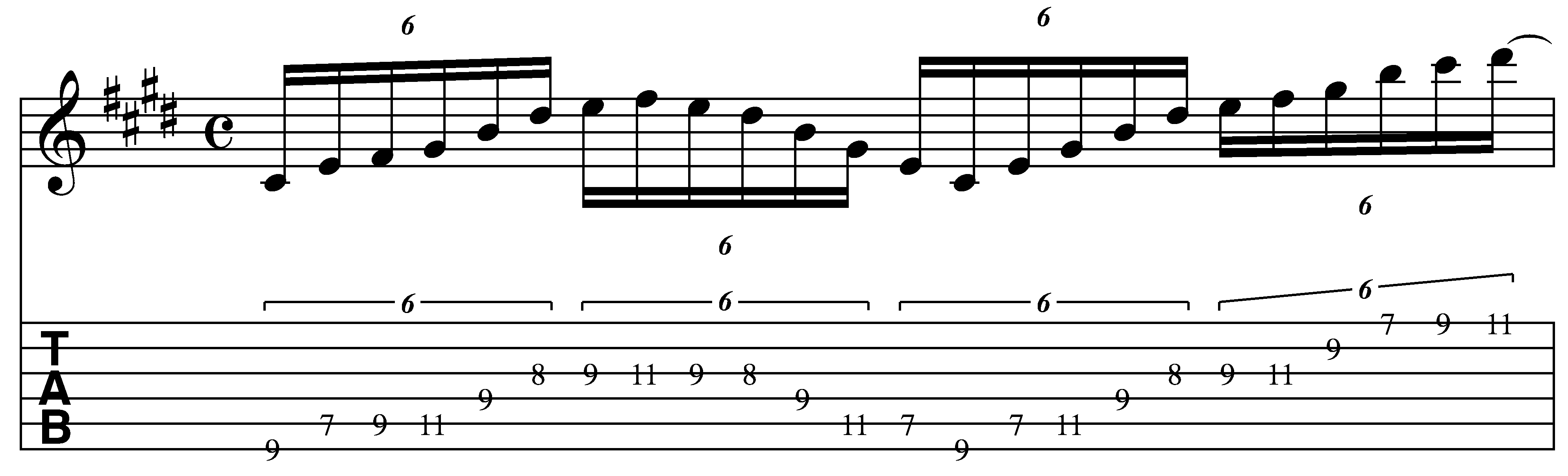 The first part of the lick is somewhere between a scale passage and an arpeggio which makes it a little interesting to me. This approach is something I use a lot in my soloing to get away from the temptation to go on autopilot and just run scales up and down the whole time.