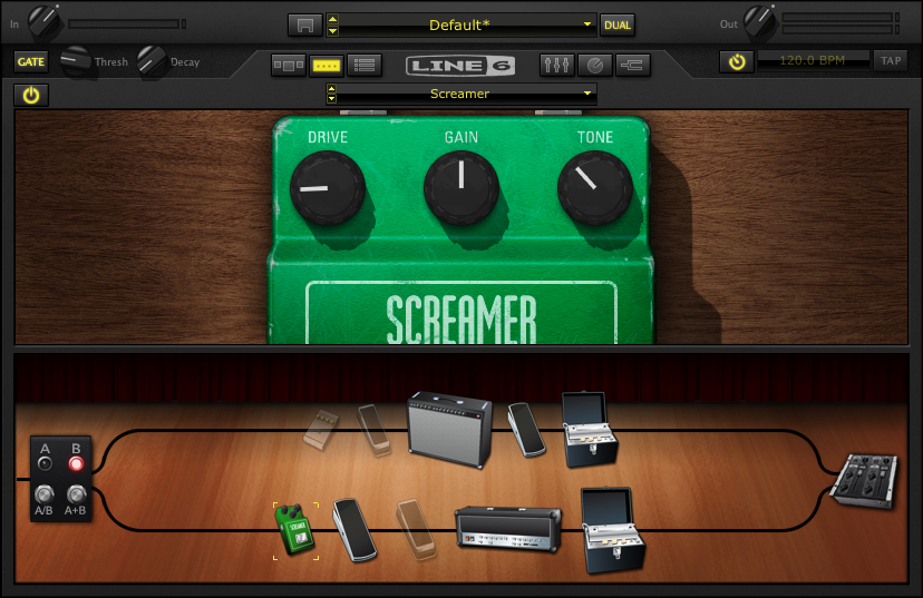 Before the Marshall for the “lead” sound I’ve put in a tube screamer. Here are the settings for that: